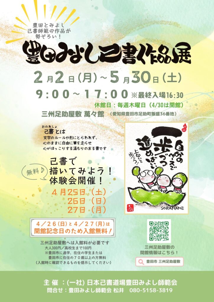 入館者はどなたでも体験出来ます。4月26日(日)、27日(月)は開館記念日なので足助屋敷の入館料が無料です!