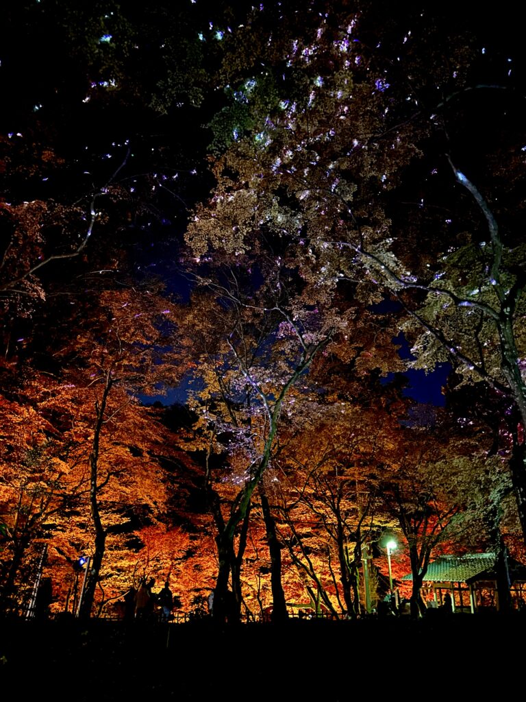 竹灯りの香積寺の写真です。ライトアップとプロジェクタの光を上手く捉え、幻想的な1枚になっています。