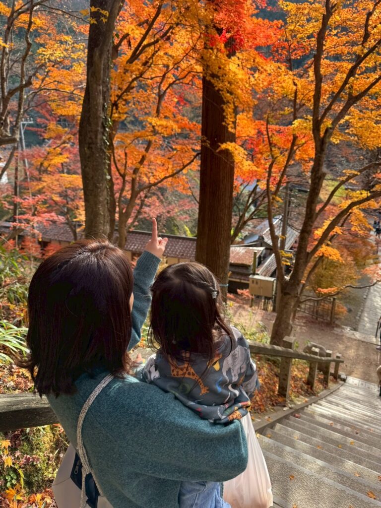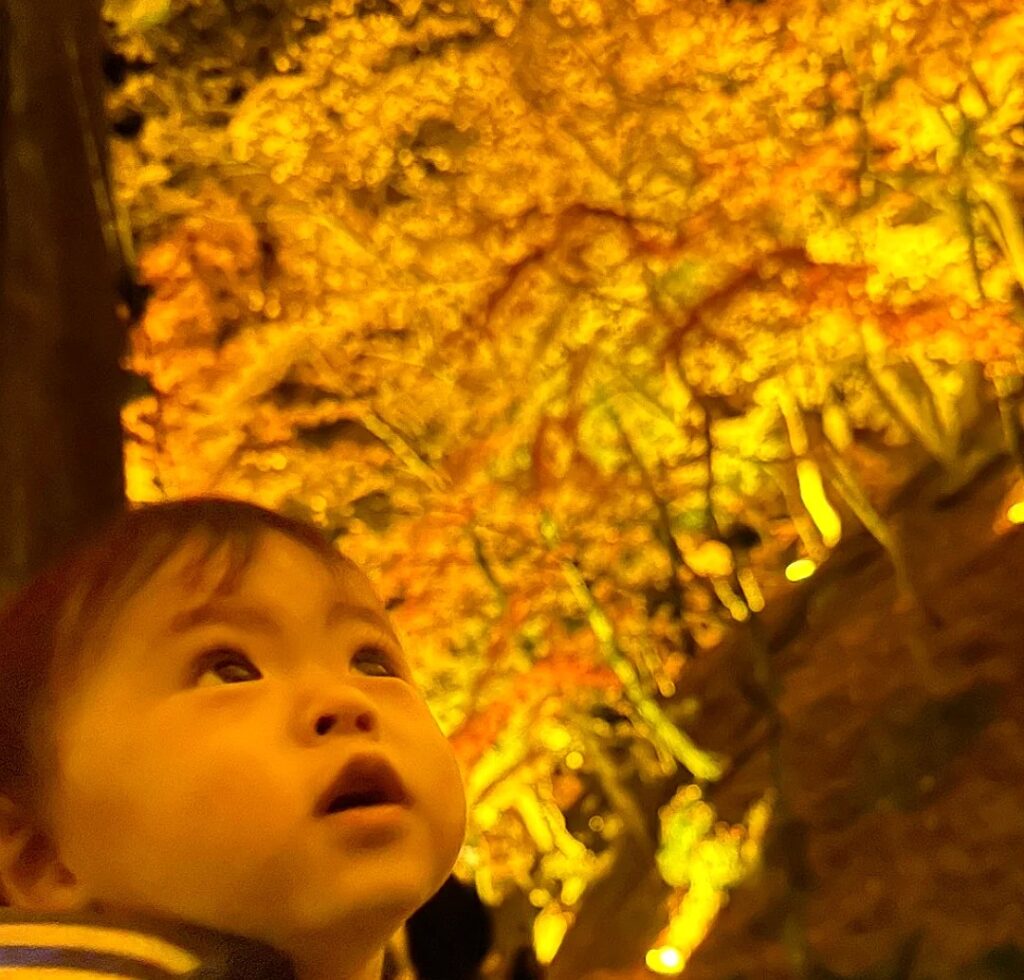 気が高く連なるもみじのトンネルから。ご家族でお越しいただきました。ご子息への愛がとっても溢れています。