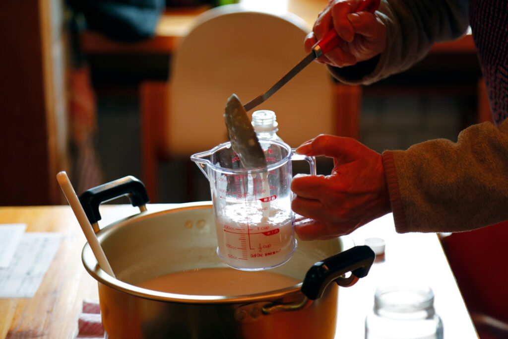<内容>ほうらいせん関谷醸造直伝の作り方で、米糀と酒粕を使った2種類の甘酒作り。